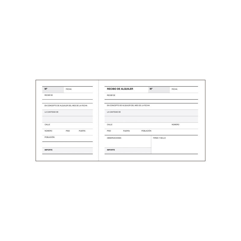 - Talonario de recibos - Papel Litos - 100 hojas - Recibos alquiler - Medidas: 210 x 100mm